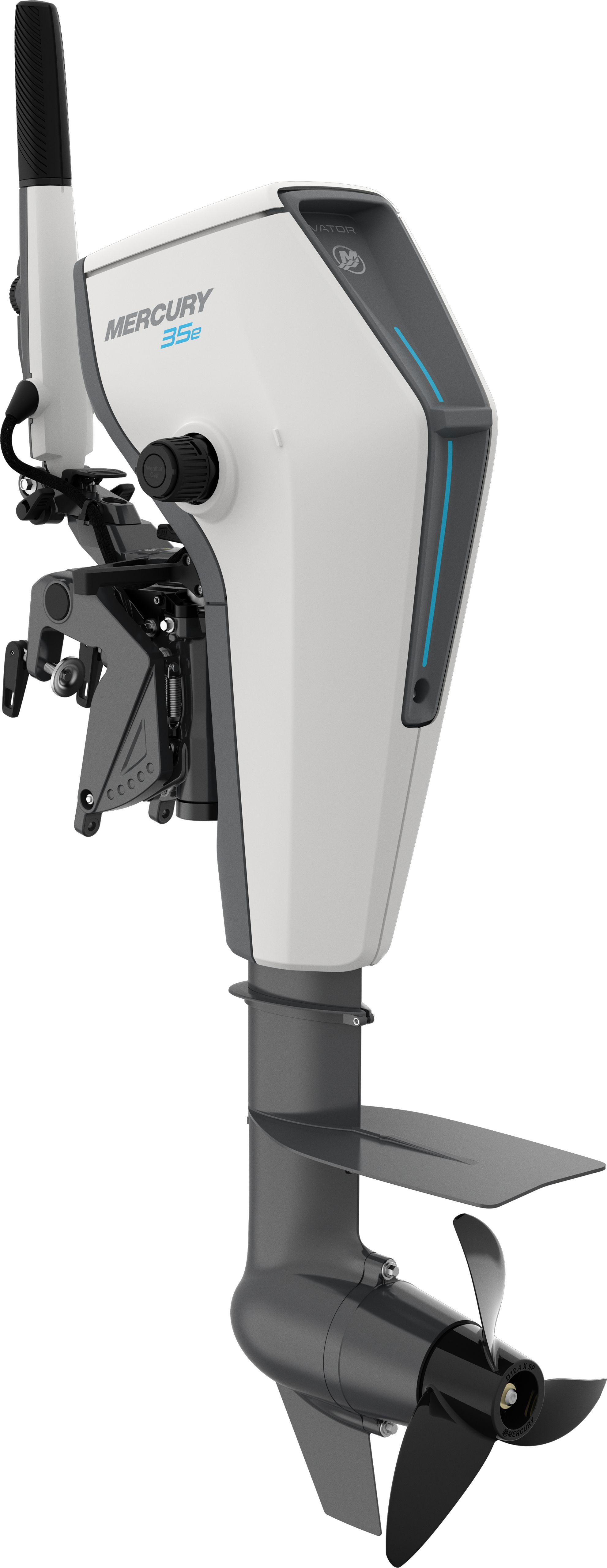 Mercury Avator E35 EXLH El-påhængsmotor Batteri, kabler og andet udstyr er ikke inkluderet. Brug vores konfigurator for at bygge din egen pakke inklusiv det udstyr du skal bruge, og den batterikapacitet du ønsker.